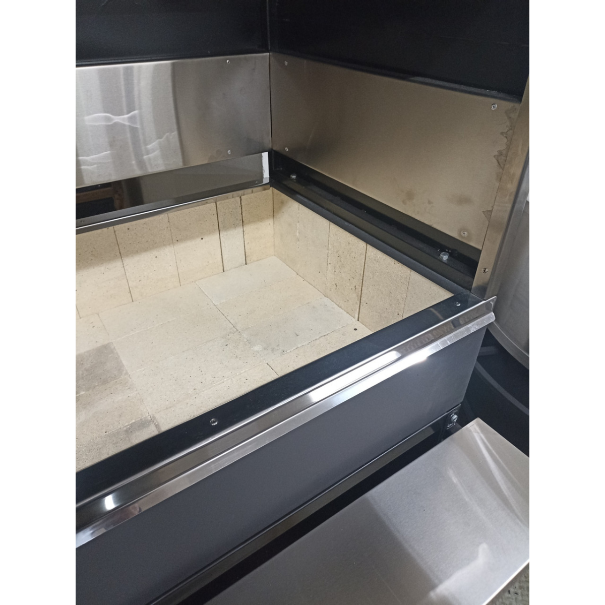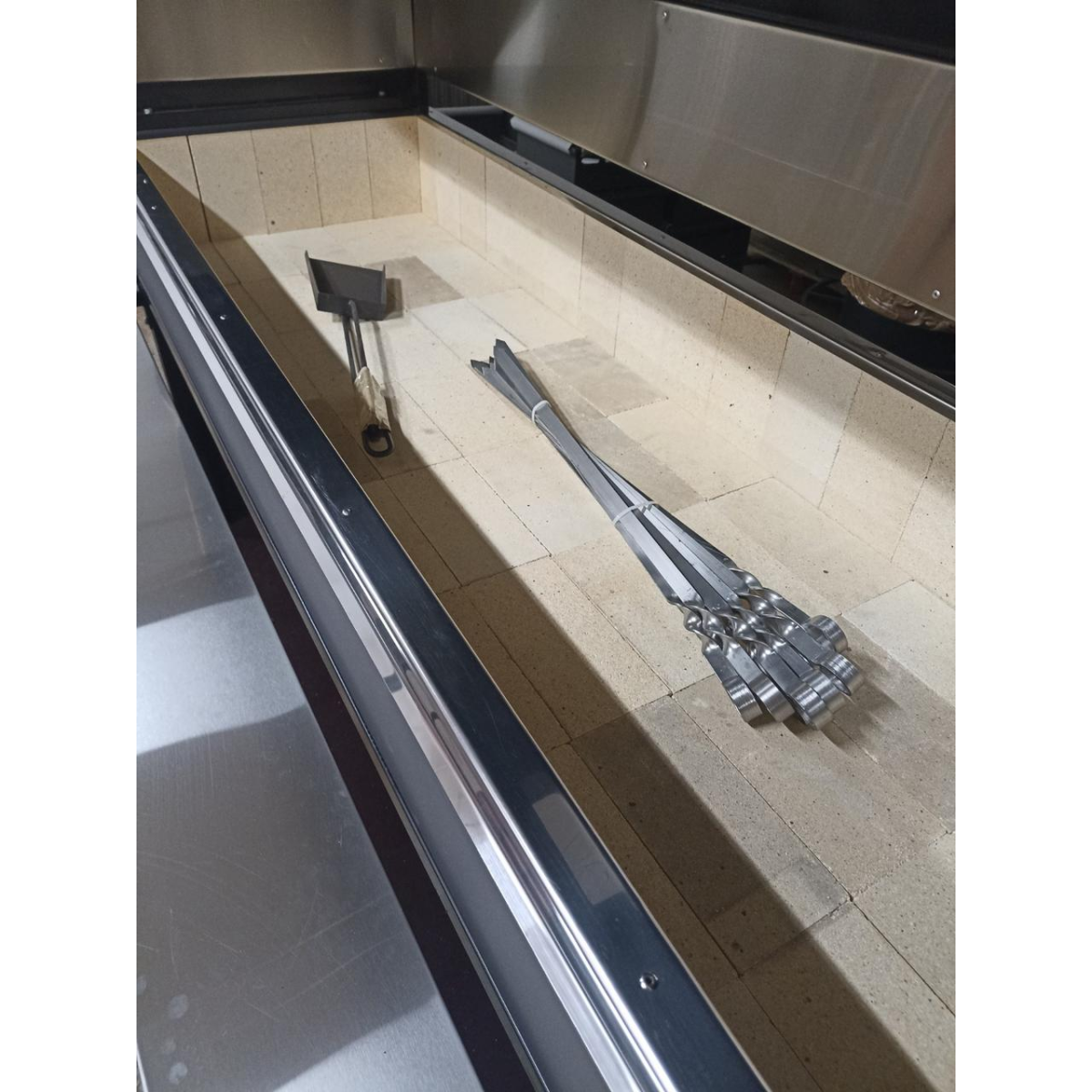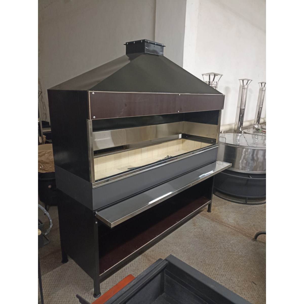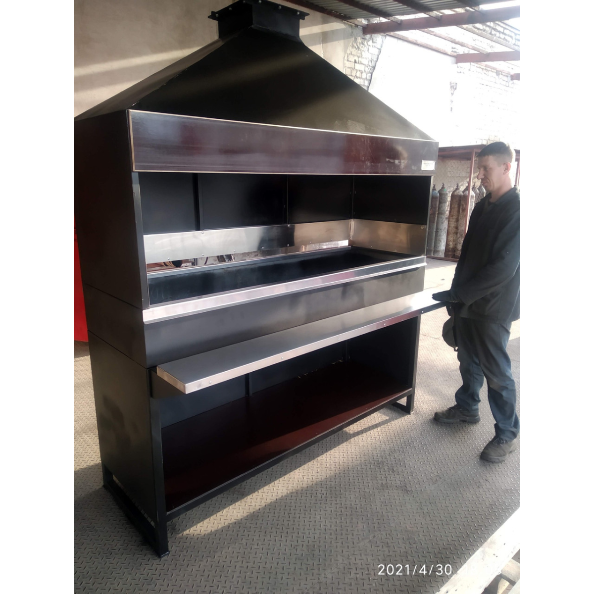 Розміри мангала: 2 140*650 мм, h=1100 / 2550 мм Парасолька витяжна Стінки і дно викладені шамотною цеглою