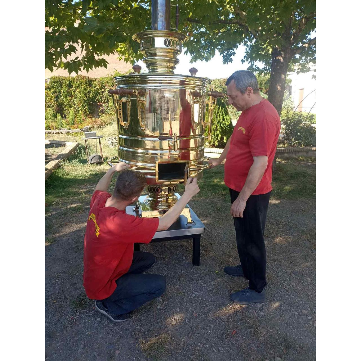 Класичний Запорізький Самовар складається з трьох роз'ємних частин: кришки, тулова та основи з фронтальною топкою. Забезпечено зручність його транспортування, експлуатації та технічного обслуговування. Фронтальна топка особливо зручна при закладанні дров та контролі ступеня їх горіння.