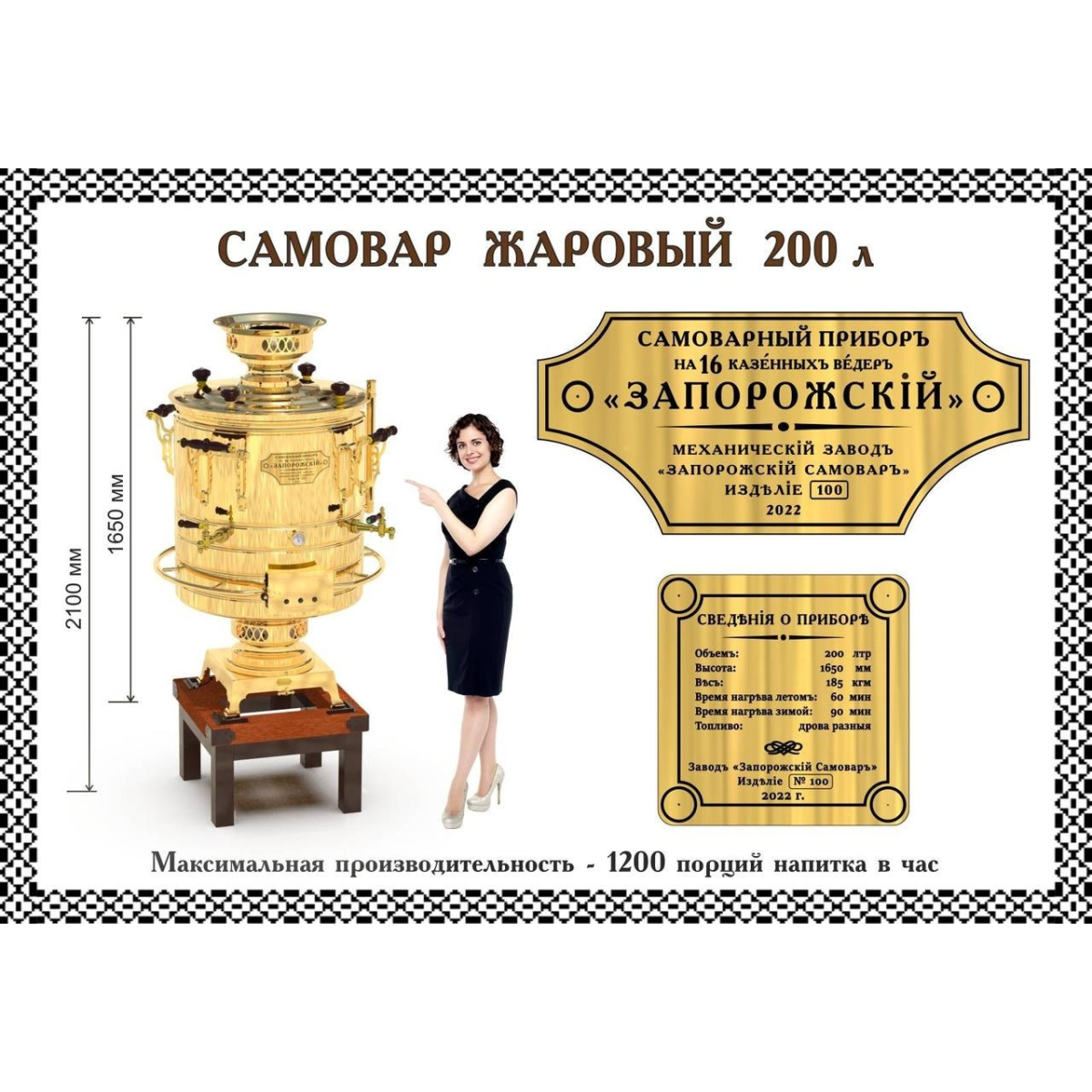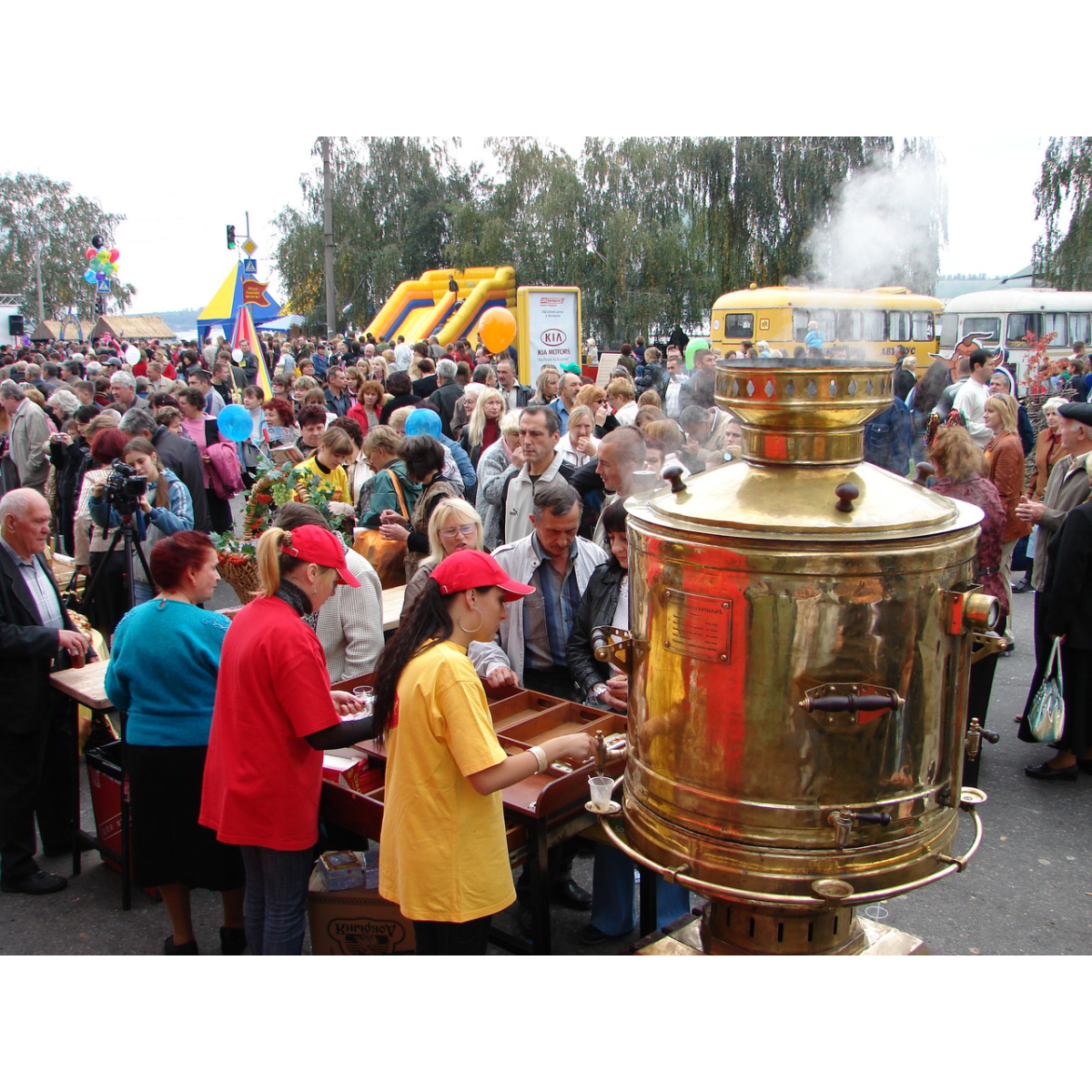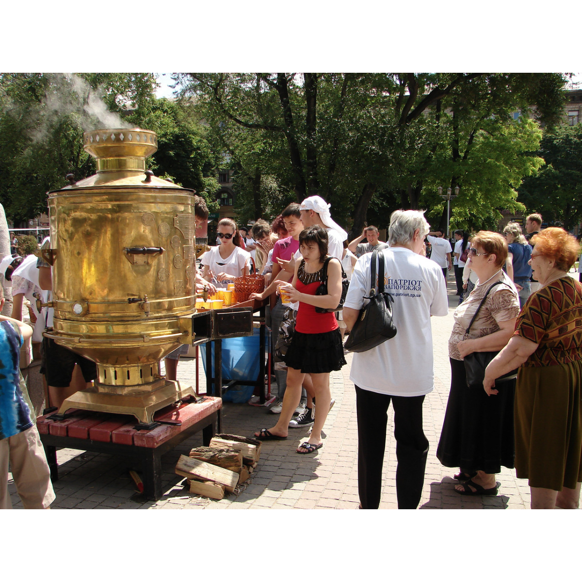 Завод "Запорізький Самовар" має Патент світового рівня і з 2004 року виробляє потужні жарові та електричні самовари. Їхнє цільове призначення - проведення масових чаювання на площах і в паркових зонах міст. У день свята від 6 000 до 12 000 гостей отримують порцію ароматного чаю, кави, глінтвейну, грогу або гарячого молока. Слід пам'ятати, що успіх у продажах влітку приносять також охолоджені напої - aice-tea, український узвар з льодом, пунш та ін. Кількість операторів на стенді від 2 до 4 осіб. Запорізький Самовар успішно працює за гарячим і холодним типом напоїв!