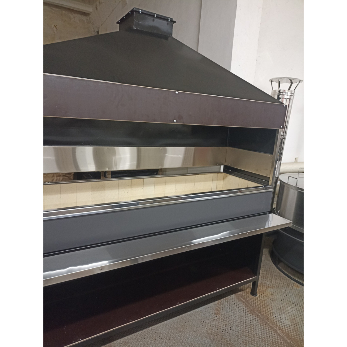 Розміри мангала: 2 140*650 мм, h=1100 / 2550 мм Парасолька витяжна Стінки та дно викладені шамотною цеглою
