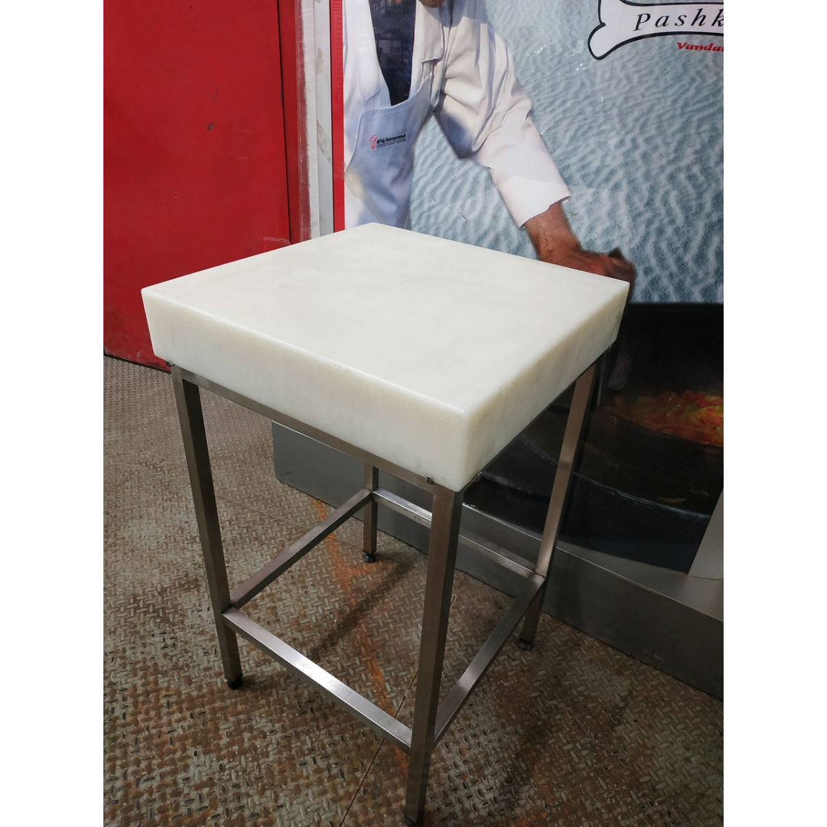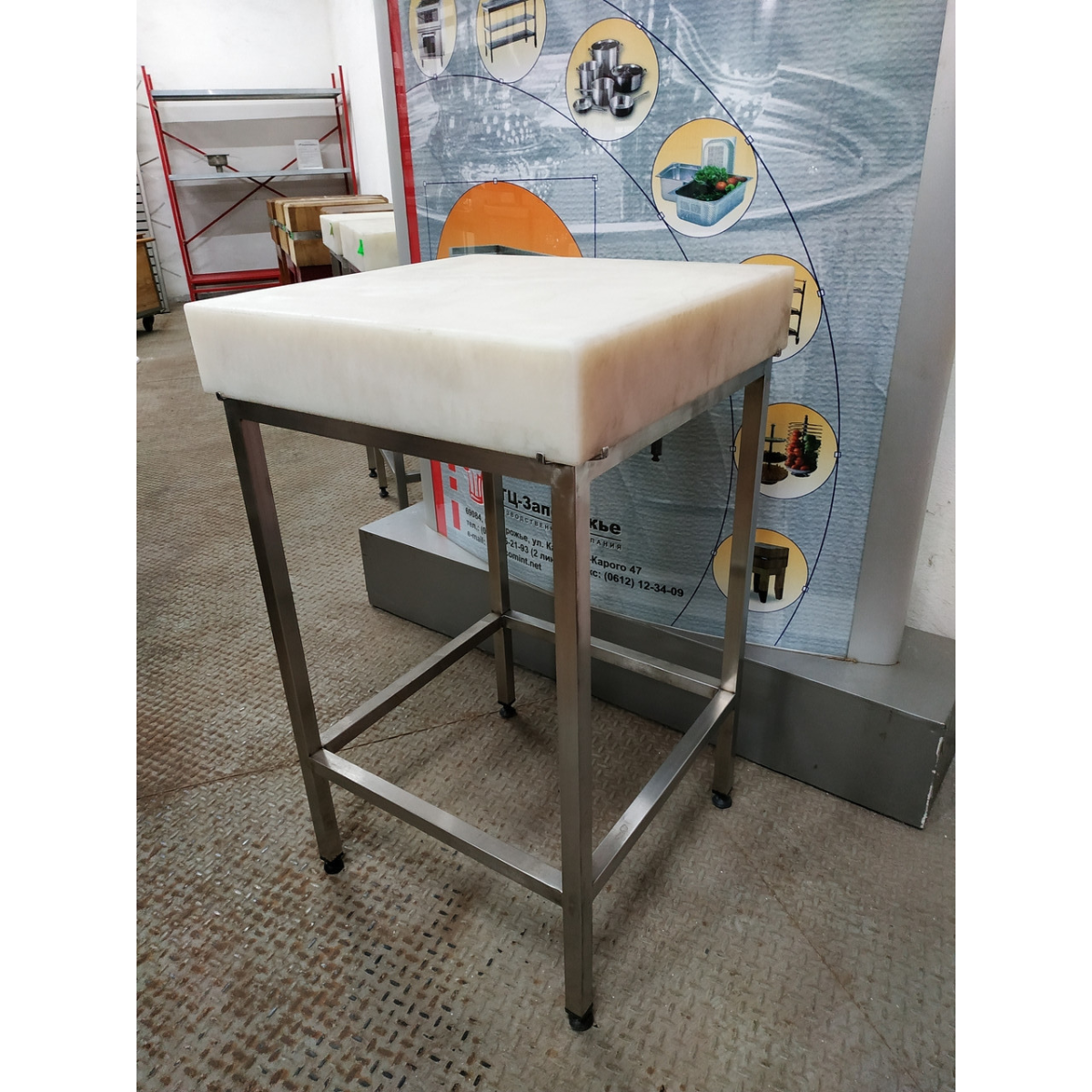 Стіл з поліетиленовою стільницею 500*500, h850 мм з нержавіючої сталі AISI 304