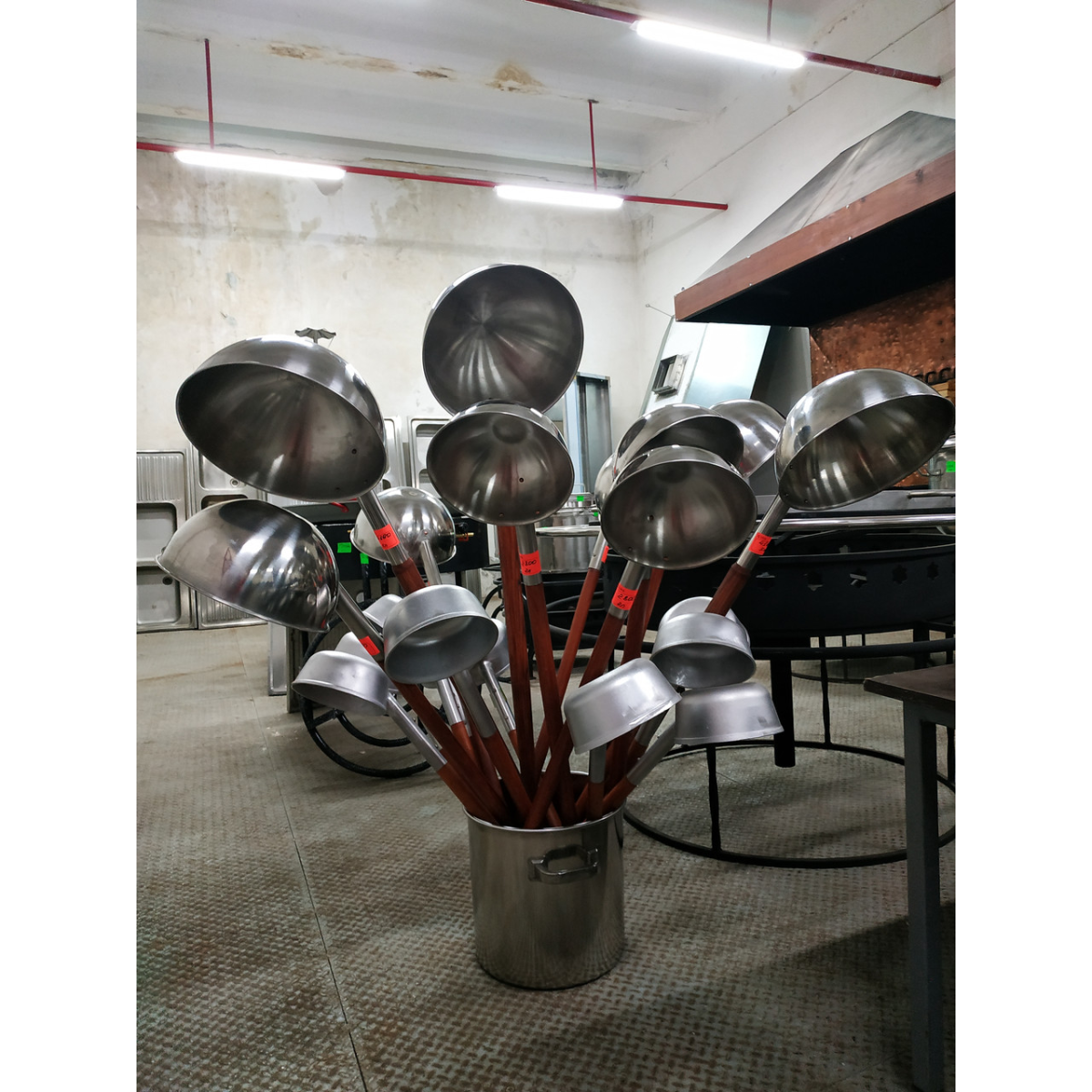 Робота кухарів із котлами та чанами великих об'ємів на відкритому повітрі та роботи військових кухарів на пересувних польових кухнях проводяться із застосуванням спеціального великого кухарського інвентарю.